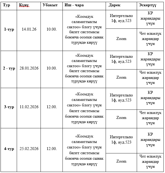 ЭАЖММ магистратурасына кирүү сынагындагы турлардын графиги